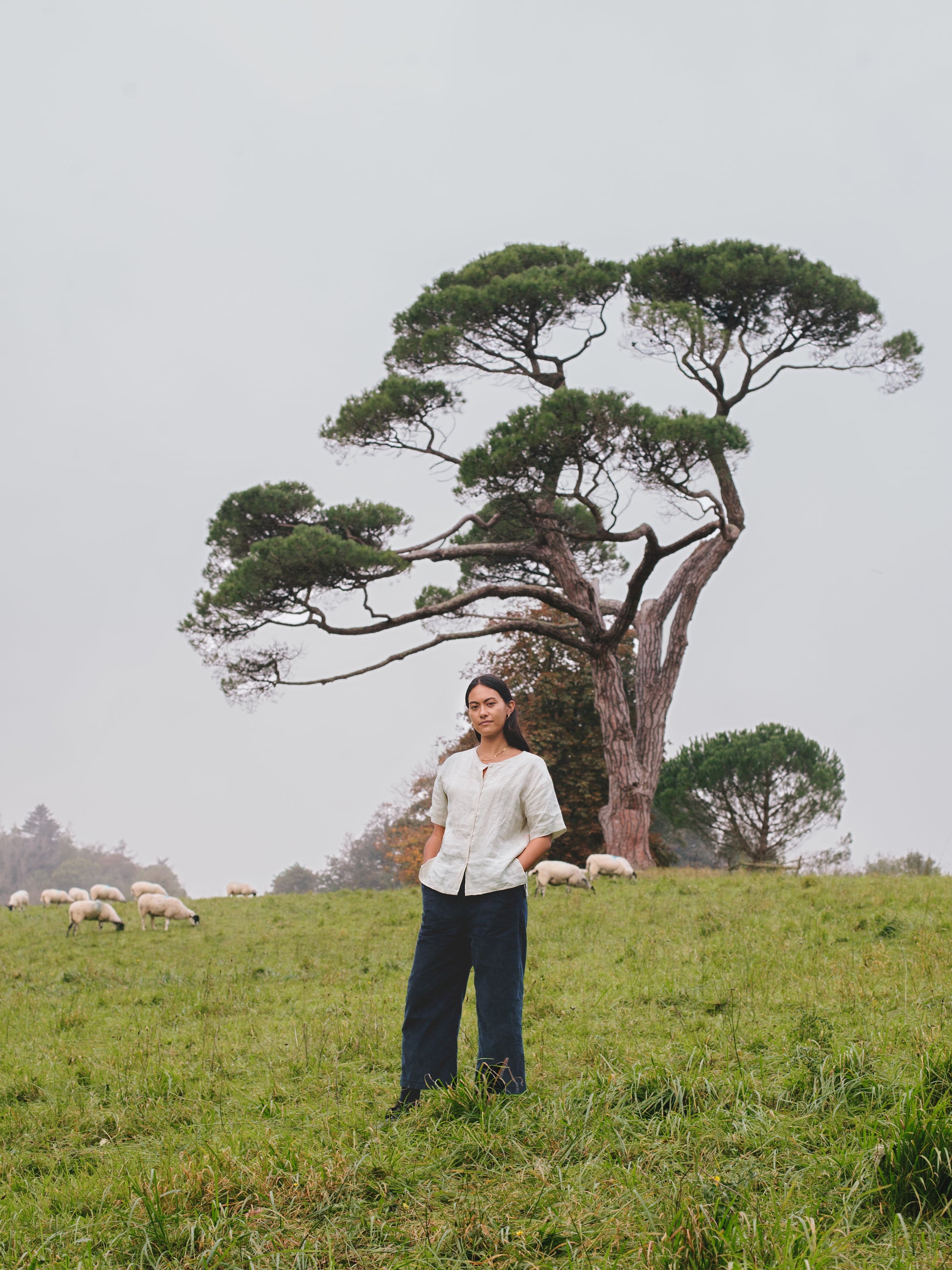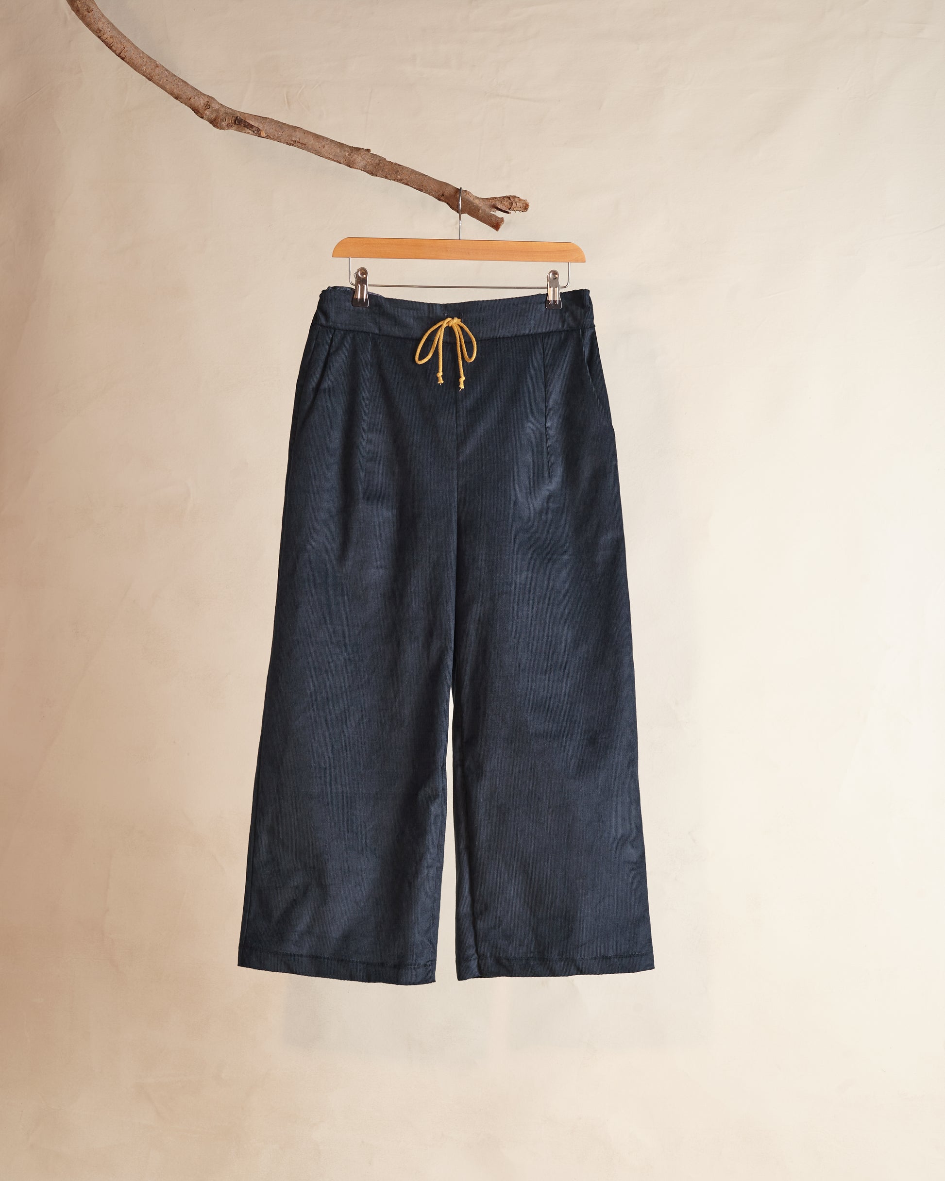 Our Drawstring Trousers are an everyday style that sits slightly high on the waist, with a full leg cut sitting at ankle length.
